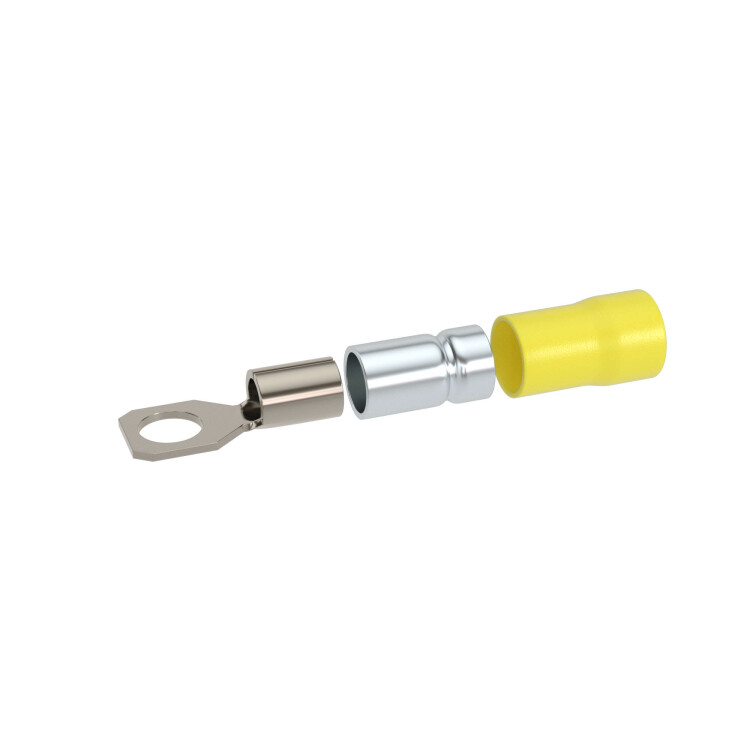 Предназначен для оконцевания медных/алюминиевых многопроволочных жил кабелей/проводов в электрических цепях переменного/постоянного тока напряжением до 600 В. Контактная часть выполнена из высококачественной меди марки М1. Лужение исключает образование гальванической пары. Внутренняя часть гильзы имеет радиальные насечки, повышающие плотность контакта. Изоляция из ПВХ выдерживает температуру до 85 ⁰C. Класс горючести - V0, стандарт UL 94. Двойная гильза обеспечивает наилучший электрический контакт и повышает виброустойчивость соединения. Рекомендованы для регионов с повышенной сейсмической активностью и на производственных объектах. Цвет - желтый. Сечение: 4-6 мм2. Диаметр отверстия клеммы 8,4 мм. Метиз - М8. Форма контактной части - кольцо.