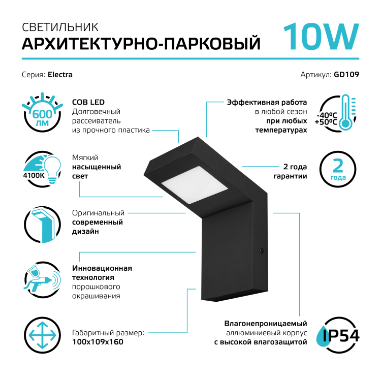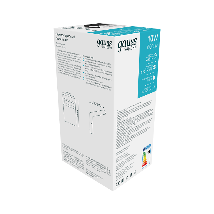 Светильник садово-парковый архитектурный Gauss Electra подвесной крепится на стену фасадов зданий, перголы, заборов, террасы. У него стильный современный минималистичный дизайн. Хорошо сочетается с другими вариантами осветительной линейки Gauss Electra такими как столб 58см и столб 78см. У светильника алюминиевый корпус с порошковым покрытием черного цвета. Прозрачный пластиковый рассеиватель, сила светового потока 600лм с цветовой температурой 4000К (нейтральный белый свет). Параметры защиты от внешней среды позволяют светильникам беспрерывно работать в условиях от -40 до+50°С.