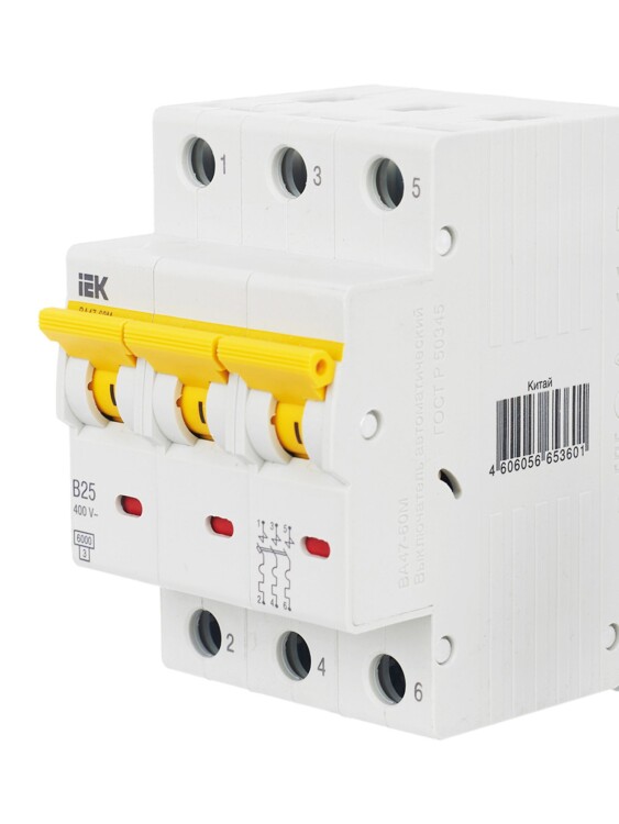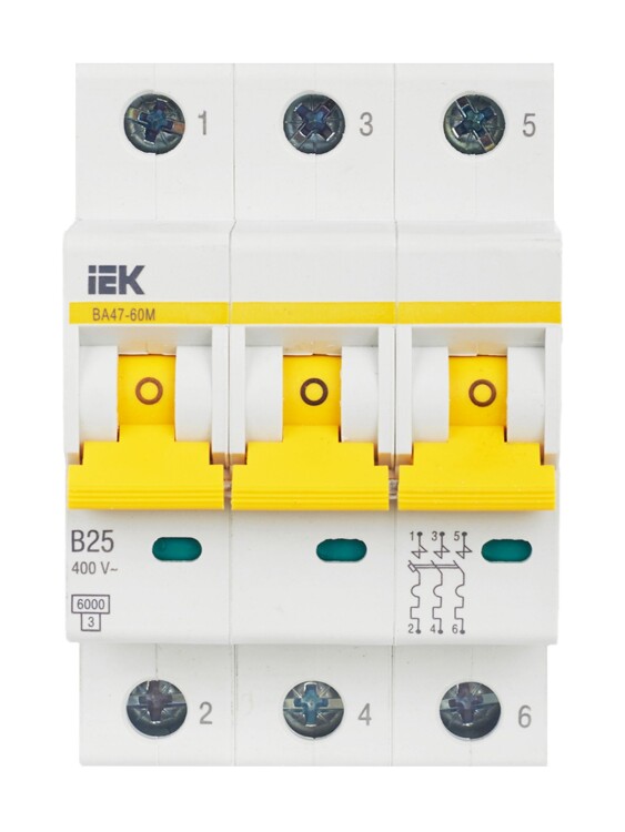 Выкл. авт. ВА47-60M 3Р 25А 6кА B IEK (кр.1шт)