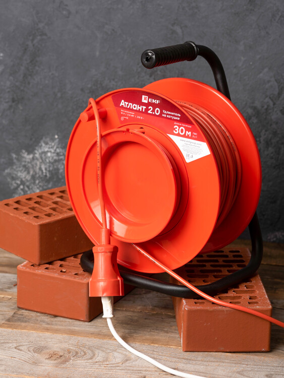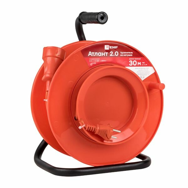 Удлинитель на катушке "Атлант 2.0" 1 гнездо 30м без заземления ПВС 2*1 10А/2,2кВт PROxima (кр. 1шт)
