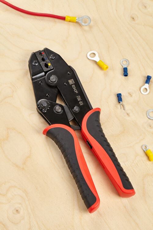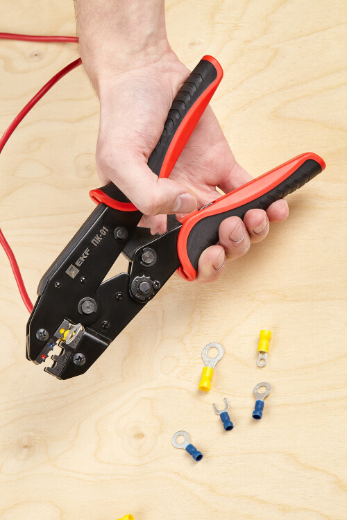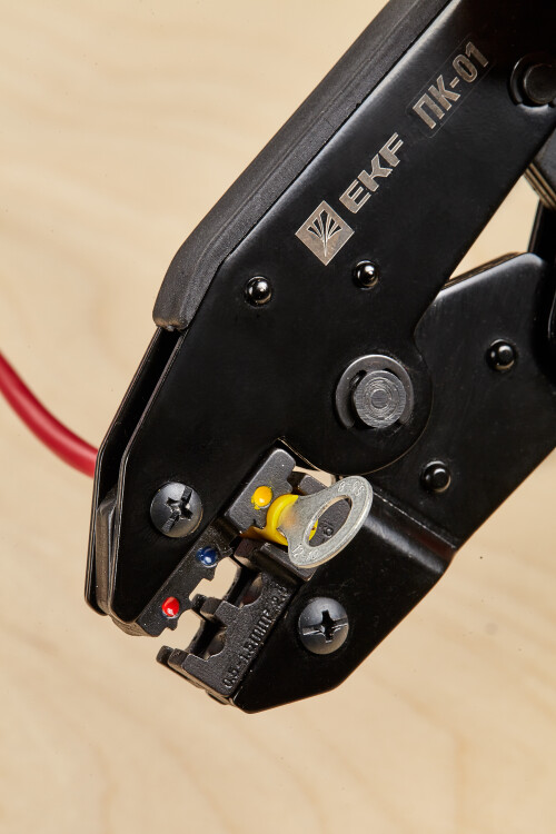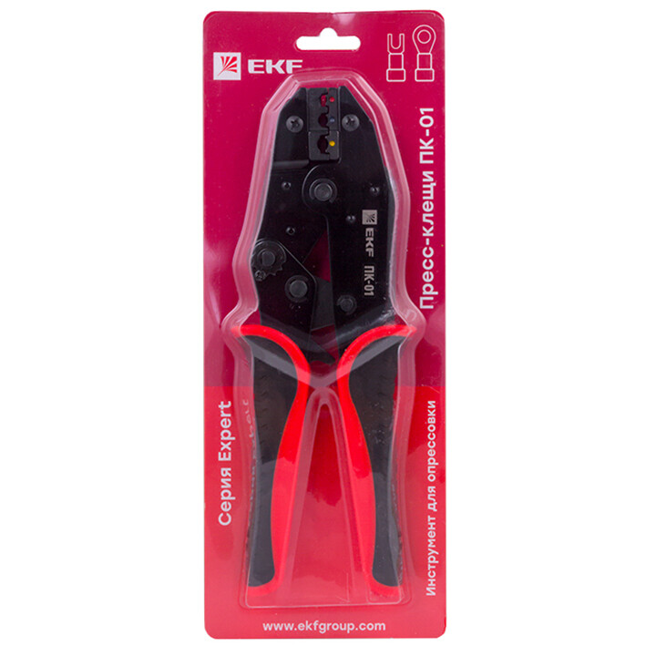 Пресс-клещи pk-01-exp предназначены для НКИ, НВИ наконечников сечением 0,5-6 мм2. Инструмент оснащен храповым механизмом с автоматической разблокировкой по завершению цикла опрессовки. Каждая модель имеет маркировку, указывающую значение сечения используемого наконечника или разъема, а также нанесенную цветовую маркировку, соответствующую цвету изолирующей манжеты. Профиль опрессовки - овал.