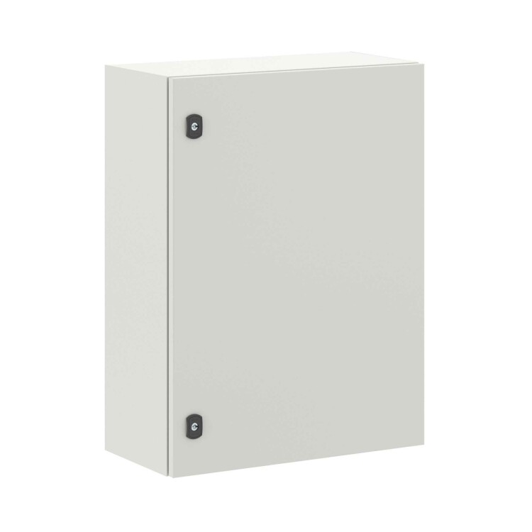 Навесные корпуса серии STE предназначены для систем автоматизации и распределения электроэнергии. Корпус, дверь, фланец серии STE изготавливаются из листовой стали толщиной 1,5 мм с атмосферостойким порошковым покрытием, цвет RAL7035. Монтажная плата изготовлена из оцинкованной стали толщиной 1,8 мм. Степень защиты IP66, ударопрочность IK10, сейсмостойкость 9 баллов по шкале MSK-64, климатическое исполнение УХЛ1, ОМ2, ОМ3, группа горючести Г1. Комплект поставки: корпус, дверь реверсивная, монтажная плата с двунаправленной разметкой, дверные рейки, поворотный замок 2 шт., сплошной фланец для ввода кабеля 1 шт., комплект заземления с проводами заземления. Габариты 800x600x300 (ШхВхГ) мм.