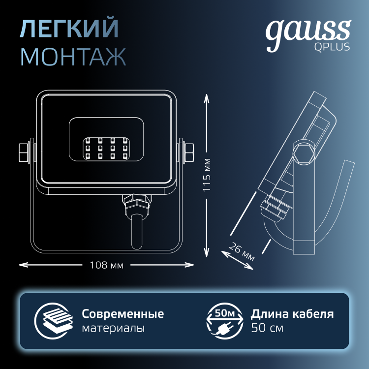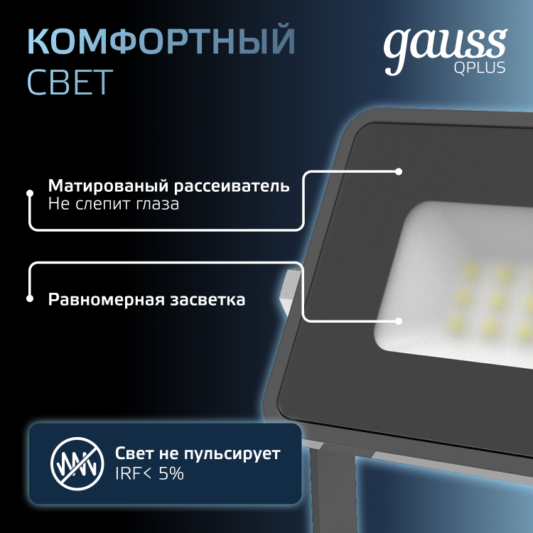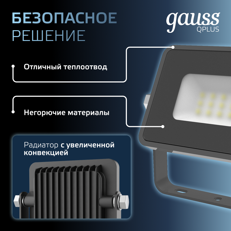 Светодиодные прожекторы Gauss серии Qplus в новом эксклюзивном цвете «графит» предназначены для освещения крупногабаритных помещений и объектов, требующих мощной подсветки. Это могут быть производственные или спортивные площадки, автостоянки, а также фасады зданий.