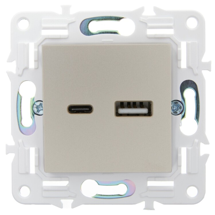 SKANDY Роз. USB A+C 18Вт SK-R13Sa песоч. IEK (кр.1шт)