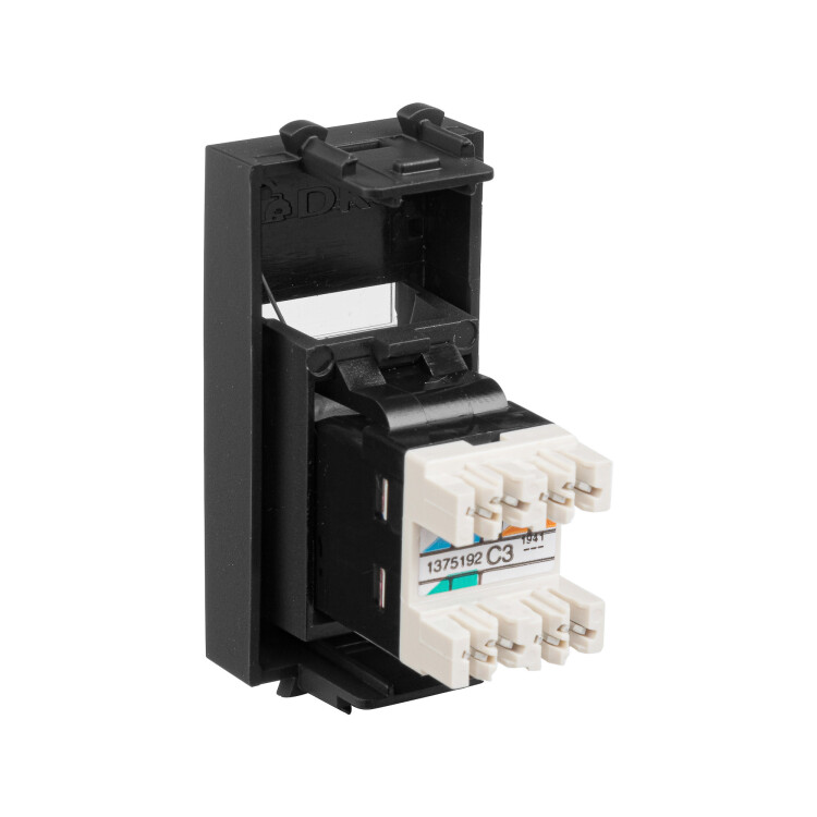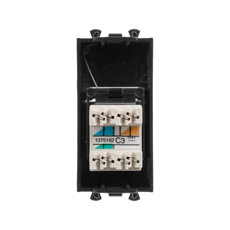 Телефо нная розетка RJ-12 модульная. Предназначена для монтажа в систему пластиковых кабельных коробов "In-liner Front" и систему алюминиевых кабельных коробов и колонн "Aero" при помощи рамок-суппортов и каркасов "Avanti" (код 4400912 и т.д.). Используется для подключения телефонного кабеля к рабочему месту. 6P6C. С пылезащитной шторкой, с маркировочной табличкой. В комплекте разъем Keystone. Для заделки контактов используется инструмент типа 110. Фиксация проивзодится в подрозеточные коробки глубиной не менее 45 мм при помощи каркаса с лапками (код 4400802) и саморезов. 1 модуль. Цвет: "Черный матовый"