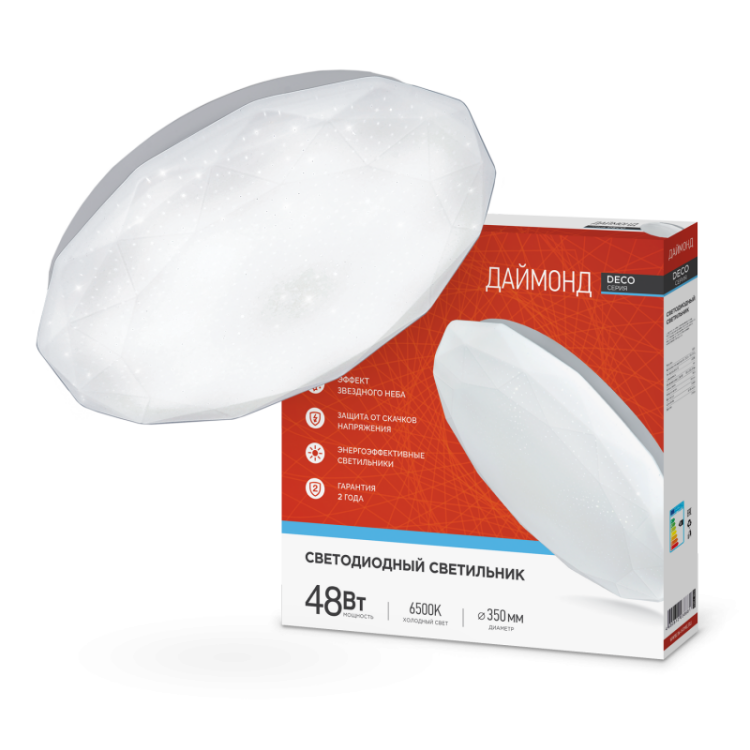 Светильник светодиодный серии DECO 48Вт 230В 6500К 3120Лм 380х55мм ДАЙМОНД IN HOME (кр. 1шт)
