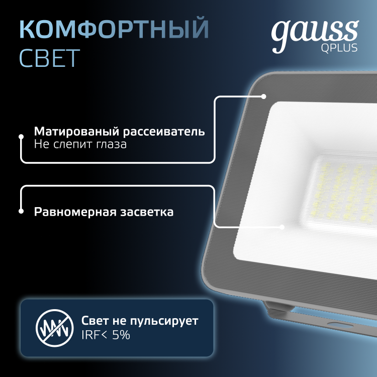 Прожектор светодиодный Gauss Qplus 30 W 2550 lm IP65 6500K графитовый серый 1/10