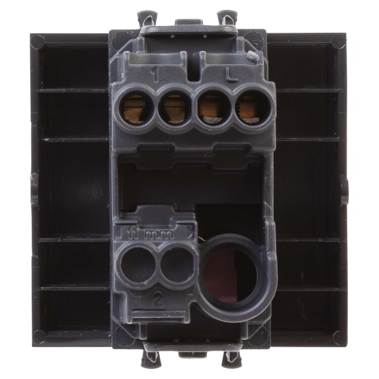 Кнопка модульная серии «Avanti». Предназначена для монтажа в систему пластиковых кабельных коробов «In-liner Front» и систему организации рабочих мест «Сотто» (Sotto) (в т. ч. кабель-каналы и короба «Aero») при помощи рамок-суппортов и каркасов «Avanti» (код 4400912 и т. д.). Используется для кратковременного включение источника питания энергией. Диаметр отверстий для ввода кабелей — 3 мм (по 2 отверстия на одну клемму). Винтовые зажимы. Шаблон для зачистки кабеля — 11 мм. Номинальный ток — 10 A. Номинальное напряжение — 230 В. Фиксация производится в подрозеточные коробки при помощи каркаса с лапками (код 4400802) и саморезов. 2 модуля. Цвет: «Чёрный матовый». Производитель оставляет за собой право вносить во внешний вид изделия изменения, которые не влияют на его функционал, безопасность и надёжность.