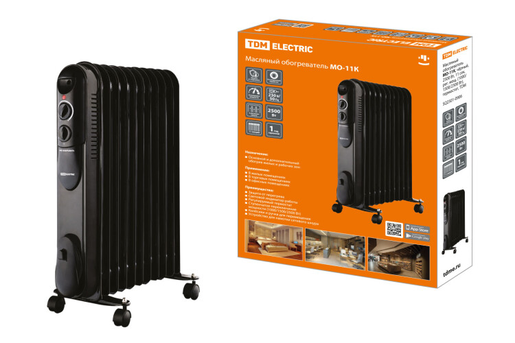 Масляный обогреватель МО-11К, чёрный, 2500 Вт, 11 сек, рег. мощ. (1000/1500/2500 Вт), термостат, TDM (кр.1шт)