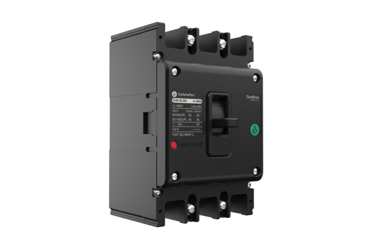 Автоматические выключатели серии SystemePact CCB DC на ток 250 А, 3P, с термомагнитным расцепителем на 125 А; установка – на монтажную плату. Выключатели серии SystemePact CCB DC применяются в сетях постоянного тока для нечастых включений и отключений, а также защиты от перегрузки и короткого замыкания. Они могут быть дополнены стандартными аксессуарами, такими же, как и аппараты переменного тока, а также специальными аксессуарами для последовательного подключения полюсов.
