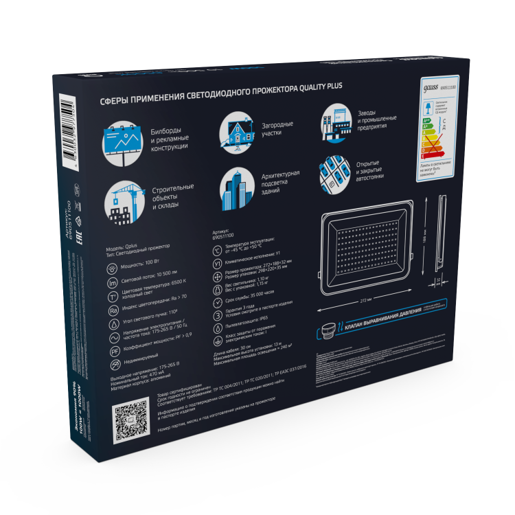 Светодиодные прожекторы Gauss серии Qplus в новом эксклюзивном цвете «графит» предназначены для освещения крупногабаритных помещений и объектов, требующих мощной подсветки. Это могут быть производственные или спортивные площадки, автостоянки, а также фасады зданий.