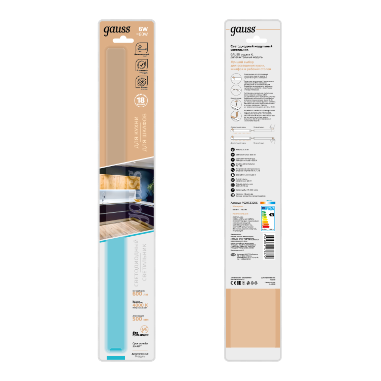 Линейные светодиодные светильники от Gauss- прекрасное решение для подсветки рабочей зоны на кухне, письменного стола, в мастерской или в любом другом пространстве. Сенсорный выключатель позволяет удобно управлять освещением. В зависимости от модели для включения светильника достаточно только приблизиться к нему или произвести легкий взмах рукой или сделать короткое касание к корпусу. Сенсорные светильники Gauss выполнены из алюминия, поэтому обладают легким весом и прочной конструкцией. Светильники различаются по мощности, световому и длиной самого светильника. Особенностью светильников от Gauss является возможность последовательного соединения в линейку нескольких светильников с помощью коннекторов и простая установка – достаточно их приклеить к поверхности с помощью двухстороннего скотча или прикрепить его с помощью металлических скоб. Набор установочных креплений для двух вариантов монтажа входят в комплектацию данного изделия.