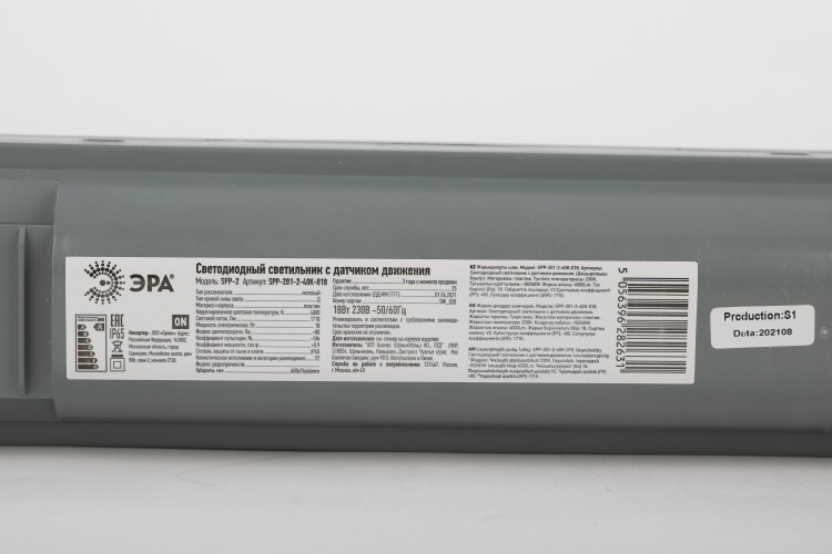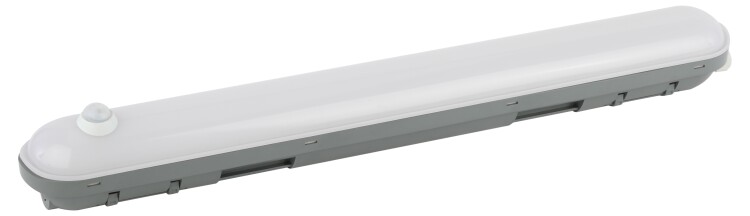 Линейный светодиодный светильник 18Вт с инфракрасным датчиком движения. Датчик имеет фиксированнные настройки : задержка времени отключения - 30с, максимальная дальность обнаружения - 5м, порог срабатывания по освещенности - 6 лк, угол обзора - 110 градусов.