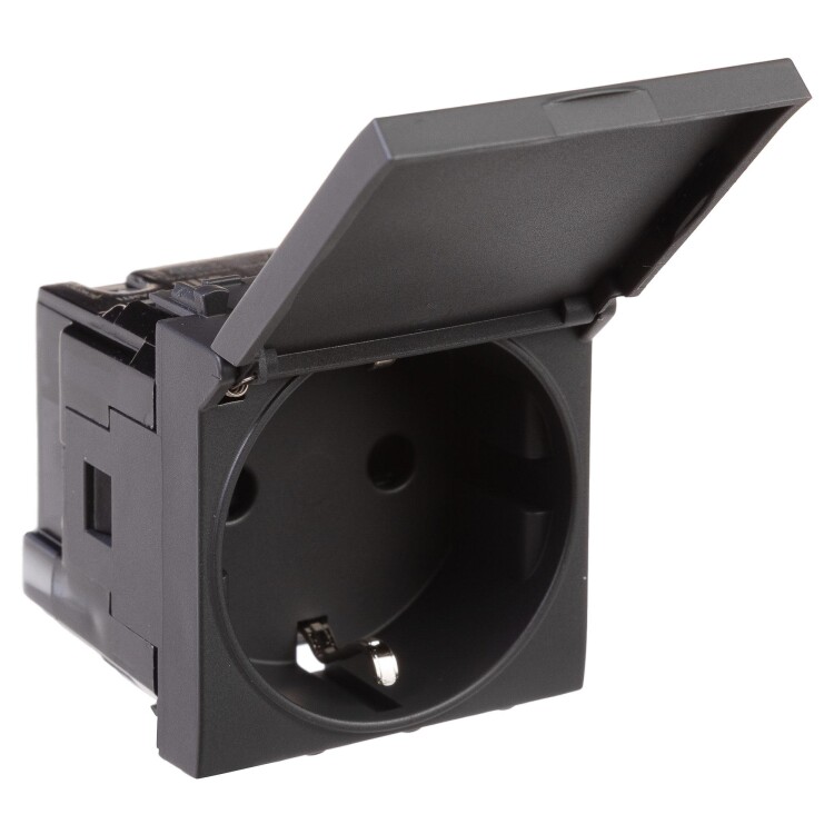 Розетка 2P+E (однофазная розетка с заземлением) модульная с крышкой от ДКС применяется для подключения различных электроприборов. Изделие предназначено для монтажа в систему пластиковых кабельных коробов «In-liner Front» и систему организации рабочих мест «Сотто» (Sotto) (в т. ч. кабель-каналы и короба «Aero») при помощи рамок-суппортов и каркасов «Avanti» (код 4400912 и т. д.). Лаконичные формы электроустановочных изделий «Avanti» отлично сочетаются с глубокими цветами. Пластиковые части устройства имеют оттенок «Чёрный матовый». Это тёмный насыщенный цвет, который легко сочетается с любыми оттенками, придавая им оттенок богемной утончённости. Производитель оставляет за собой право вносить во внешний вид изделия изменения, которые не влияют на его функционал, безопасность и надёжность.