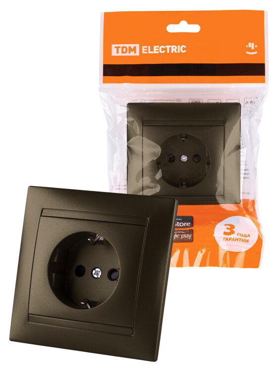 Розетка 2П+З 16А 250В с защ. шт. бронза "Лама" TDM (кр.10шт)