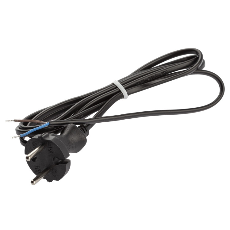 Шнур для бра UX-ШВВП-2x0,75-3m-B с вилкой, без заземления, провод ШВВП с сечением 2х0,75, длина 3 м, цвет - черный. Провод шнура питания состоит из скрученных жил с надежной ПВХ оболочкой. На конце шнура имеется штепсельная вилка. Изделие предназначено для комплектации или ремонта электрических бытовых приборов.