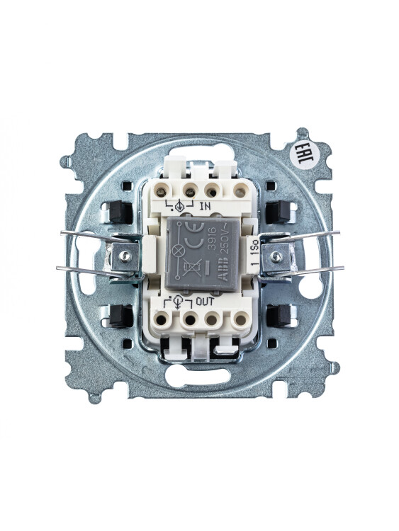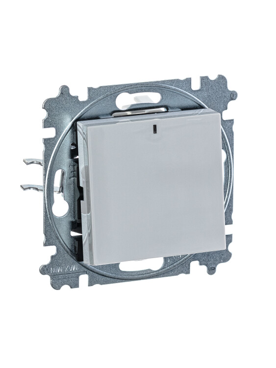 Механизм выключателя в комплекте c накладкой и блоком подсветки для установки в декоративную рамку. Подсветка LED ориентационная белого цвета