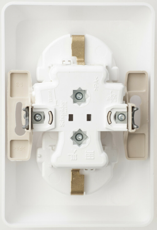 Розетка Systeme Electric (ранее Schneider Electric) ЭТЮД (белый, скрытой установки) двухместная, с заземлением и шторками предназначена для применения в сетях до 250В, на ток до 16А. Двухместная розетка позволяет подключить два устройства в одном месте. Габаритные размеры основания 113*76,5 мм. Шторки и заземление обеспечивают дополнительную безопасность при косвенных прикосновениях. Сделано в России.