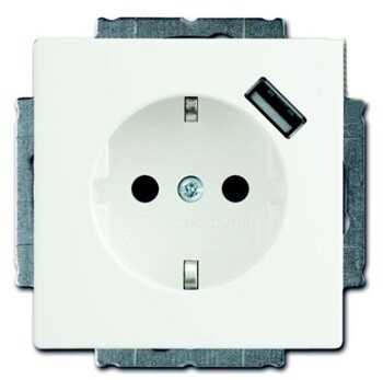 Розетка Schuko с устройством зарядным USB, 20 EUCBUSB-94-500, Basic55 альпийский белый 16А, 700 мА, электронная защита от перегрузки и КЗ, безвинтовые клеммы, защитные шторки, (кр.1шт)