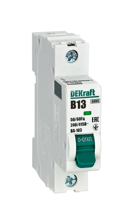 Автоматический выключатель серии ВА-103 NEW DEKraft; 1P; номинальный ток 13 А; характеристика B; отключающая способность 6 кА, что позволяет использовать аппараты в качестве вводных. 5 монолитных заклепок повышают прочность корпуса аппарата. Окошко-индикатор всегда показывает состояние контактов вне зависимости от положения рукоятки управления. Боковые каналы охлаждения повышают стабильность работы при высоких температурах окружающей среды. Есть возможность установки дополнительных аксессуаров с левой стороны устройства. Аппарат на 100% совместим с корпусами и оболочками DEKraft, Systeme Electric.