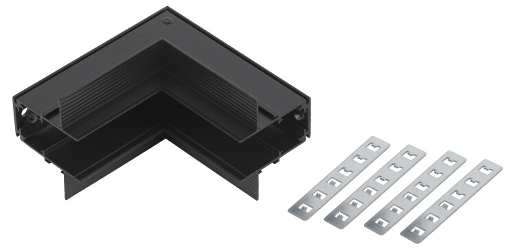 Угловой коннектор внутренний для встраиваемого магнитного шинопровода NOVA TRM-R20. Материал - Алюминий. Коннектор предназначен для механического соединения двух отрезков шинопровода под прямым углом при переходе шинопровода с потолка на стену.