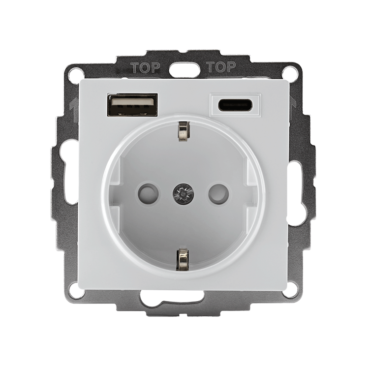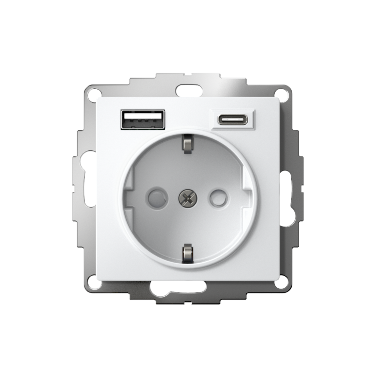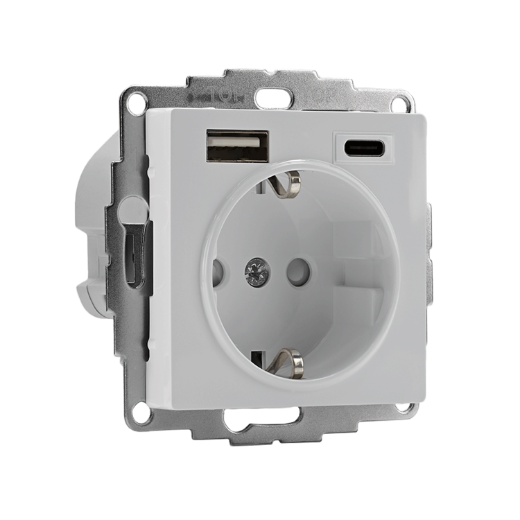 Розетка силовая Systeme Electric (ранее Schneider Electric) серии AtlasDesign 16А в цвете белый с заземлением и шторками с ро зеткой USB с двумя разъемами тип А и тип С. Розетка совмещает в себе сразу 3 функции в одном изделии. Удобное и современное решение для дома, офиса и других помещений. Лицевые детали из качественного ABS-пластика, устойчивого к царапинам и УФ-излучению. Заземляющий контакт обеспечивает дополнительную защиту от удара электрическим током. Шторки обеспечивают дополнительную безопасность в доме, где находятся дети. Одно устройство позволяет как подключить бытовые приборы, так и зарядить мобильные устройства.