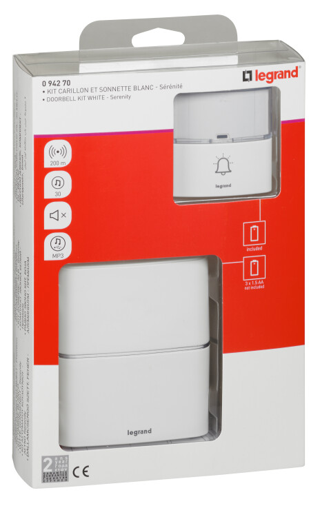 Звонок беспроводной - комплект "Премиум" - 30 рингтонов - дальность 200 м - цвет белый