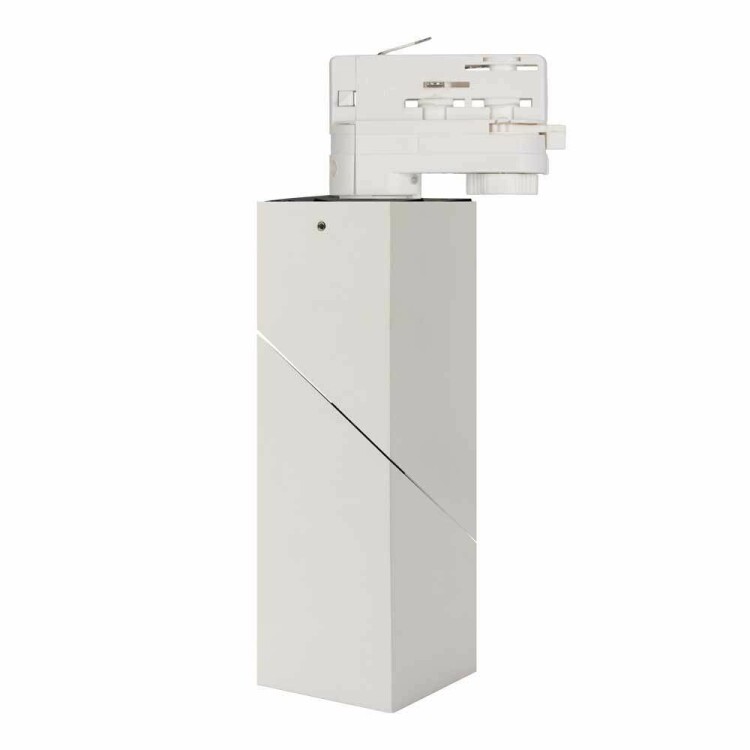 Светильник подвесной для треков/шин 4 провода, 12Вт. Цвет свечения ДНЕВНОЙ 4000K, световой поток 1000лм, CRI>90, угол свечения 30°, угол регулировки наклона 90°, угол поворота 355°. Корпус прямоугольный, металл, цвет белый с черной вставкой, IP40. Размер LxWxH 60x60x195мм. Питание AC 220-240V, 12Вт, драйвер встроенный (DC300mA 25-42V).