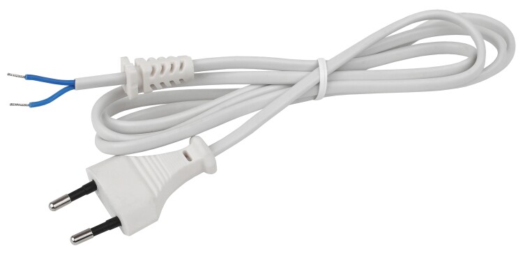 Шнур для бра UX-ШВВП-2x0,75-1,8m-W без заземления, провод ШВВП с сечением 2х0,75, длина 1,8 м, цвет - белый. Провод шнура питания состоит из скрученных жил с надежной ПВХ оболочкой. На конце шнура имеется штепсельная вилка. Изделие предназначено для комплектации или ремонта электрических бытовых приборов.