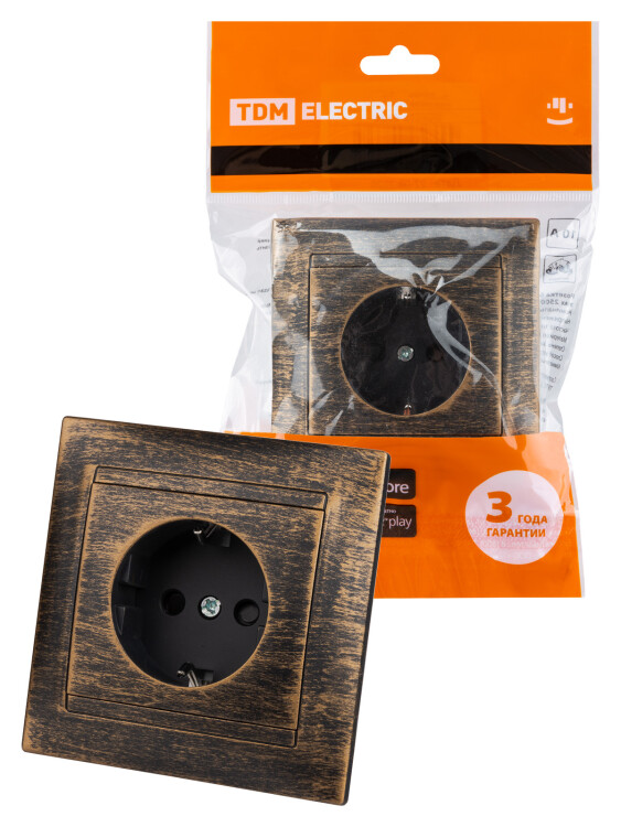 Розетка 2П+З 16А 250В с защ. шт. старинная бронза "Лама" TDM (кр.10шт)