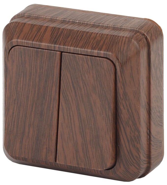 Выключатель 2-клавишный серии Intro Quadro открытой установки цвет венге 2-104-10. Номинальные характеристики 10А 250В . Выключатель выполнен из качественного термопласта, стали и латуни, оснащён винтовыми зажимами.