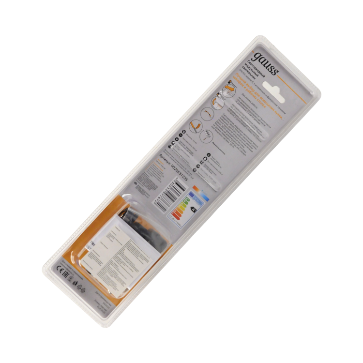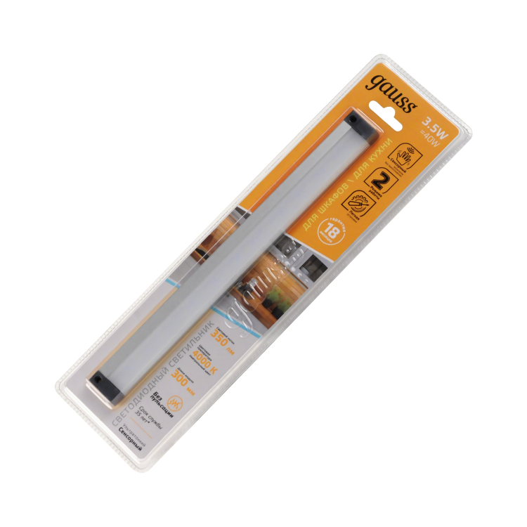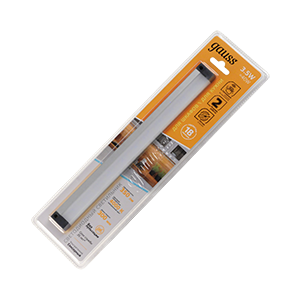 Светильник сенсорный Gauss модульный модель С 3.5w с двумя режимами работы - это ультратонкий 1см толщиной светильник, который предназначен для установки над рабочими поверхностями кухонного стола, в шкафах, под полками в качестве дополнительного функционального освещения и декоративной подсветки. У светильника два варианта монтажа - при помощи двустороннего скотча или металлических скоб. Управление осуществляется через сенсор: 1 режим - включается/выключается при движении руки на расстоянии 2-3 см от датчика, 2 режим - автоматическое включение при открытии дверцы шкафчика.