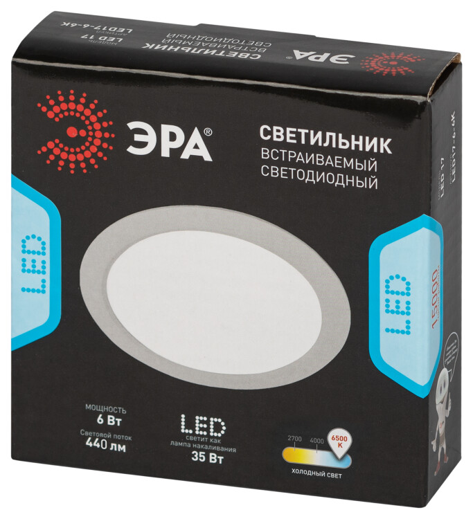 Светильник светодиодный встраиваемый ЭРА LED 17-6-6K круглый 6Вт 6500К (кр. 1шт)
