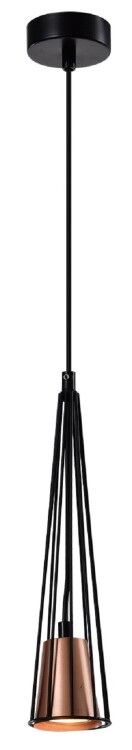 Дизайнерские потолочные светильники на тросах Rivoli Emily под 1 лампу GU10 25 Вт - арт. 4160-201. Высоту троса можно отрегулировать при монтаже подвесного светильника-люстры. Подвесной светильник Emily создан итальянским брендом Rivoli в трендовом сочетании черного и медного цветов. Компактный плафон оттенка меди "спрятан" в реечный металлический конус. Основание подвесного светильника над столом изготовлено из качественного металла, трос отличается высокой прочностью. Подвесные светильники Emily Rivoli для кухни прослужат долго и не потеряют свой превосходный внешний вид благодаря стойкому гальваническому покрытию металлической арматуры и металлического плафона.