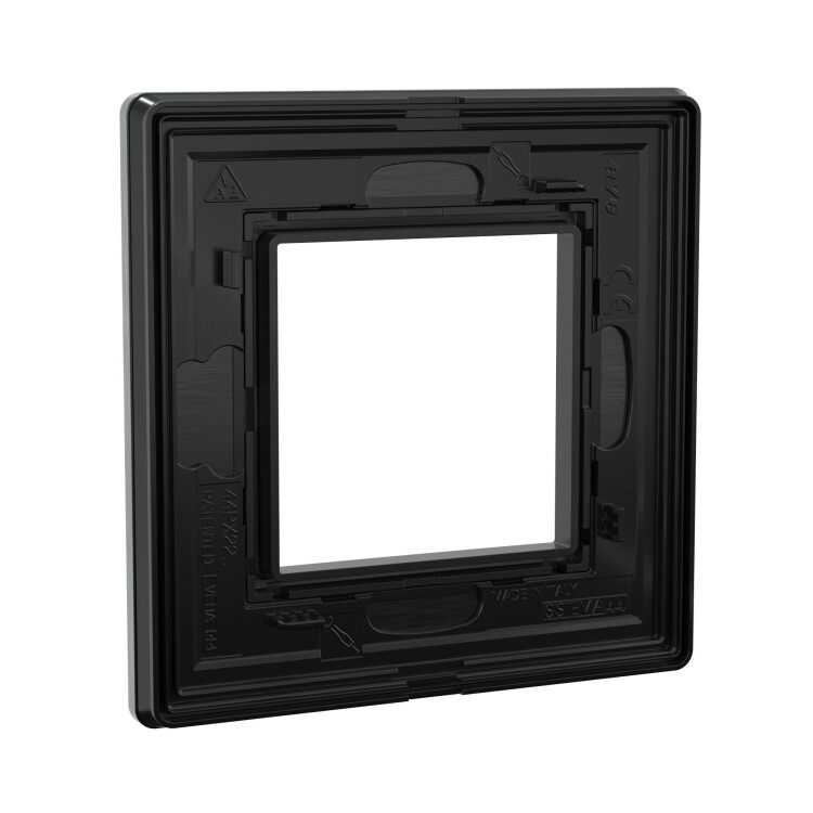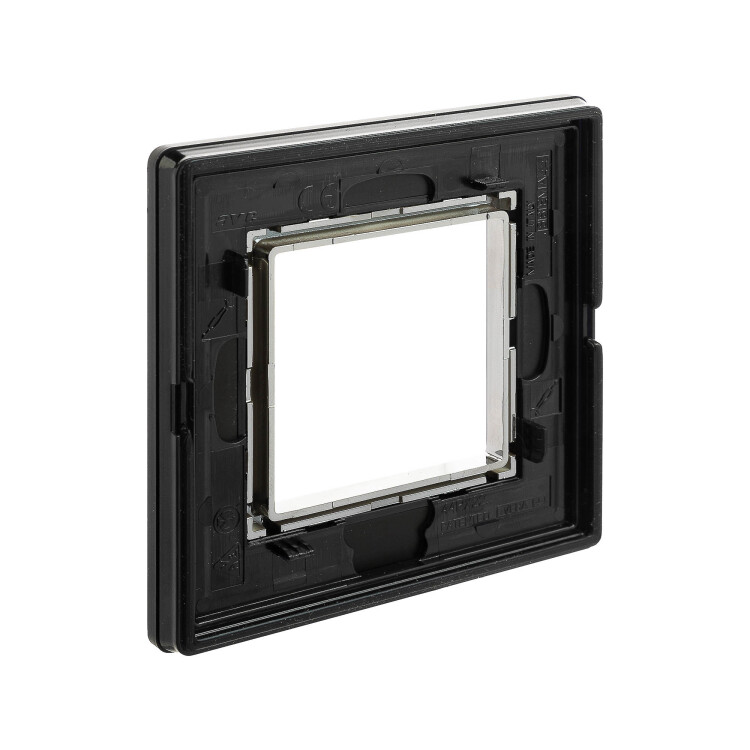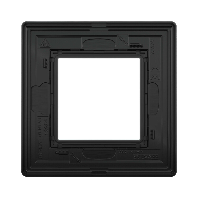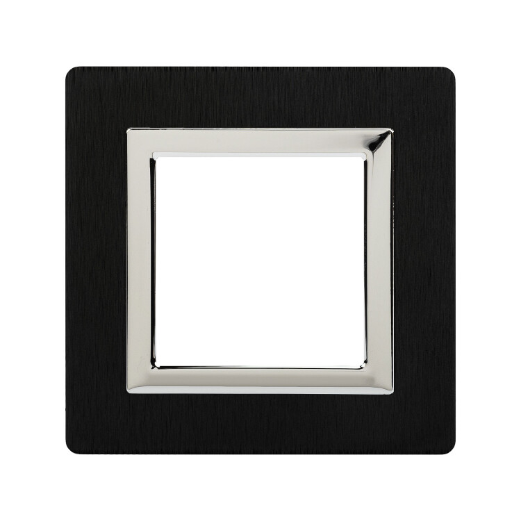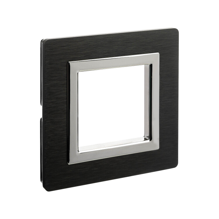 Черная р амка из алюминия для настенного монтажа. Назначение: декоративное оформление серии "Avanti"; монтаж в стену на каркас ЭУИ "Avanti" (код 4400802). Дизайн разработан B. Dall’Ecco. Материал – стекло. Фактура – глянец. Кол-во модулей: 2