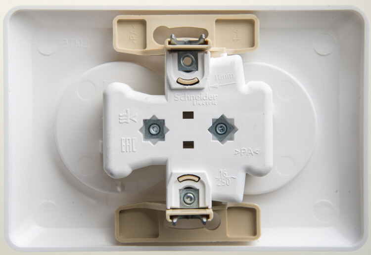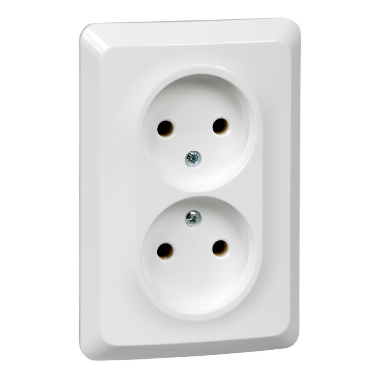 Розетка Systeme Electric (ранее Schneider Electric) ЭТЮД (белый, скрытой установки) двухместная, без шторок и заземления предназначена для применения в сетях до 250В, на ток до 16А. Двухместная розетка позволяет подключить два устройства в одном месте. Габаритные размеры основания 113*76,5 мм. Она проста в установке и удобна в применении. Сделано в России.