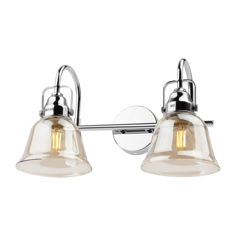 Оригинальные светильники с плафонами в форме колокольчика. Толстое дымчатое стекло отлично сочетается с хромированной арматурой и декоративной крепёжной фурнитурой. Своей формой эти светильники напоминают бутон цветка на стебле или уличные ретро-фонари. Создадут уютную атмосферу в гостиной, спальне, на кухне, в коридоре, столовой, студии. Помогут расставить в помещении световые акценты, разнообразить интерьер, организовать хорошую подсветку и многоярусное освещение. Стильные, романтичные, практичные. Коллекция представлена настенным светильником на 2 лампы.