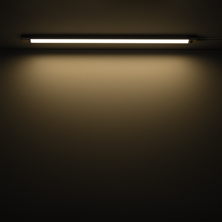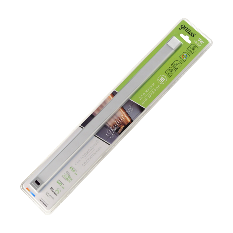 Светильник сенсорный Gauss модульный, диммируемый модель В 9w ультратонкий 1.1см в алюминиевом корпусе - тонкий и прочный может располагаться в шкафах, под полками, над рабочей поверхностью кухонь не занимая лишнего пространства и не мешая габаритами. Яркость светового потока 650лм, регулируемая при помощи сенсора цветовая температура 2700 - 6500К. В светильнике встроенный сенсор для легкого управления без касания и диммер (регулятор мощности света). Особенностью линейных светильников является возможность соединения нескольких штук в линию при помощи дополнительных коннекторов.