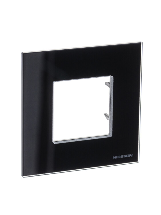 Рамка 1-постовая, 2-модульная, серия Zenit, стекло чёрное (кр.1шт)