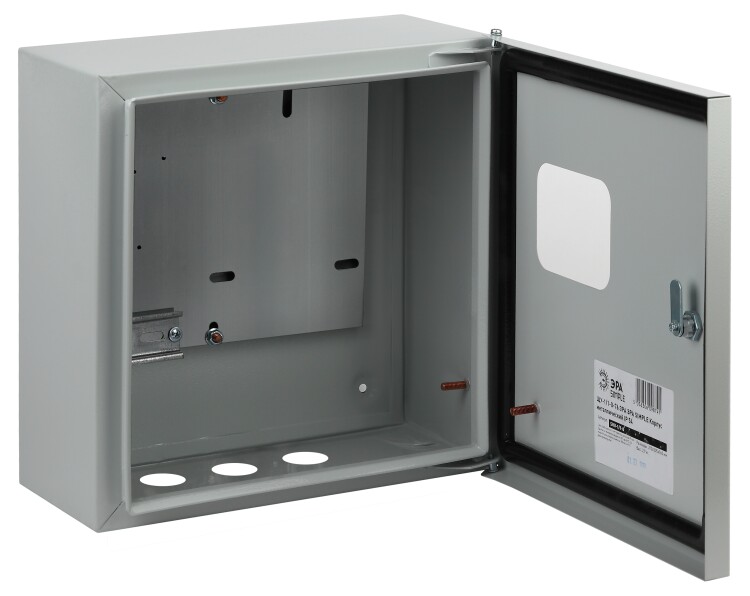 Щит учета ЭРА SIMPLE ЩУ-1-1-0-76 IP54 (300х310х155) предназначен для организации ввода электроэнергии, установки в нем аппаратов учета электрической энергии, модульных устройств, а также защиты сетей напряжением до 400 В от токов перегрузки и короткого замыкания. Обеспечивает защиту потребителей от поражения электрическим током. Устанавливается на границе энергоучета. Степень защиты IP 54/IP 55 обеспечивает щиту учета широкий спектр применения: жилые помещения, загородные дома и дачные домовладения, административные, хозяйственные сооружения, гаражи. Щит учета изготовлен из качественной российской стали, имеет жесткий сварной корпус и высококачественное эпоксидно-полиэфирное порошковое наружное покрытие. На контур двери нанесен уплотнительный состав из вспененного полиуретана. Щит представляет собой металлический сварной корпус с одной/двумя дверцами, оборудованными петлей для опломбировки. Монтажная панель (DIN рейка) позволяет установить однофазный (трехфазный) счетчик электрической энергии. Для визуализации показаний счетчика в дверке предусмотрено смотровое окно.Широкий ассортимент моделей в серии ЭРА и ЭРА SIMPLE. Щит изготовлен из высококачественной стали 08 пс ГОСТ 1050-88 методом сварки. Высококачественное порошковое покрытие, цвет RAL 7035. Высокая технологичность и простота монтажа. Возможность установки разных типов электрических счетчиков. Возможность опломбировки. Высокий уровень электробезопасности. Универсальная конструкция предотвращает попадание пыли, влаги, наледи внутрь корпуса. Для исполнения IP54/IP55 - высококачественный двухкомпонентный полиуретановый уплотнитель. В комплектацию поставки входит замок с двумя ключами. Полная комплектация изделия указана в паспорте. Гарантия от сквозной коррозии 15 лет. Гарантийный срок эксплуатации 1 год.
