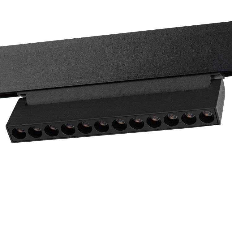 Магнитный трековый светильник TRM20-4-22-12W3K-B. Цветовая температура 3000К, индекс цветопередачи СRI>90. Мощность 12 ватт. Напряжение питания 48V. Материал корпуса алюминий. Световой прибор имеет вращающийся корпус, позволяющий регулировать направления светового потока, и угол рассеивания 30 градусов, что делает его идеальным источником света для создания акцентов в помещении и зонирования п ространства.