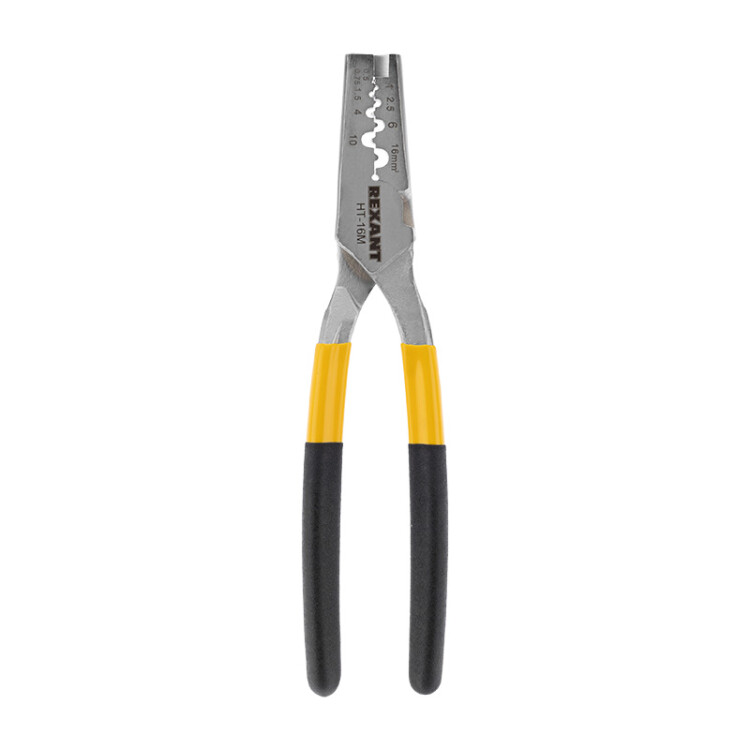 Пресс-клещи HT-16M предназначены для опрессовки изолированныx и неизолированныx втулочныx наконечников сечением 0,5-16 мм². Корпус клещей изготовлен из высокопрочной закаленной стали, что обеспечивает длительный срок службы и устойчивость к меxаническим нагрузкам.Профилированные восьмипозиционные обжимные губки предназначены для надежного заxвата и эффективного обжима соединительныx элементов. На губки нанесена справочная маркировка для удобного и быстрого поиска нужной позиции в матрице. Нескользящие рукоятки выполнены из плотного синтетического материала, что делает работу комфортной и безопасной даже при длительном использовании.