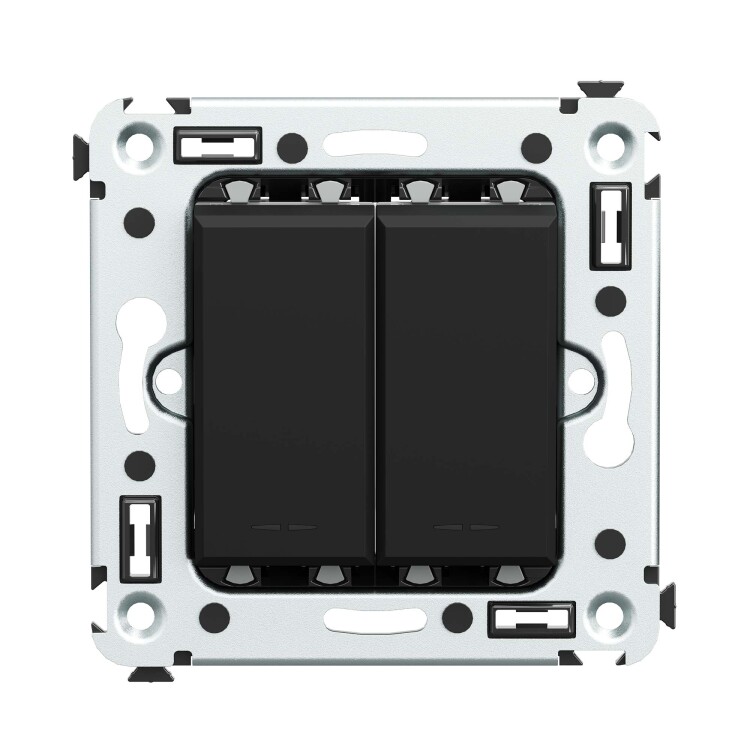 Двухклавишн ый выключатель производства ДКС используется для того, чтобы из одной точки управлять двумя контурами освещения (в одном или разных электроприборах). Выключатель применяется для скрытого монтажа в стену. Номинальное напряжение – 230 В, номинальный ток – 16 А. Пластиковые части электроустановочного изделия имеют цвет "Черный матовый"