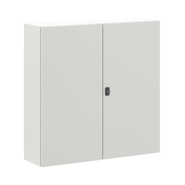 Навесные корпуса серии STE предназначены для систем автоматизации и распределения электроэнергии. Корпус, дверь, фланец серии STE изготавливаются из листовой стали толщиной 1,5 мм с атмосферостойким порошковым покрытием, цвет RAL7035. Монтажная плата изготовлена из оцинкованной стали толщиной 2,5 мм. Степень защиты IP55, ударопрочность IK10, сейсмостойкость 9 баллов по шкале MSK-64, климатическое исполнение УХЛ1, ОМ2, ОМ3, группу горючести согласно Г1. Комплект поставки: корпус, двустворчатая дверь, монтажная плата с двунаправленной разметкой, дверные рейки, ручка, сплошной фланец для ввода кабеля 2 шт., комплект заземления с проводами заземления. Габариты 1000x1000x300 (ШхВхГ) мм.