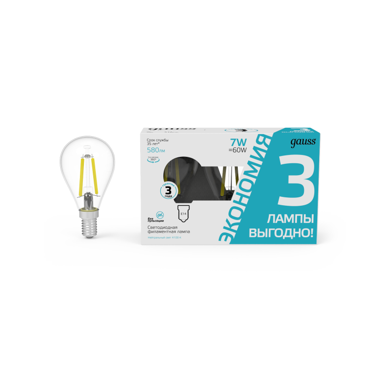 Светодиодные филаментные лампы GAUSS - это новейшие технологии в светотехнике. Лампы имеют привычный вид классических ламп накаливания, освещают пространство на 360о и дают больше света по сравнению с обычными светодиодными лампами за счет прозрачной колбы. Идеально подходят для хрустальных люстр и открытых светильников, а также для реализации дизайнерских решений, где важен вид классических ламп накаливания.