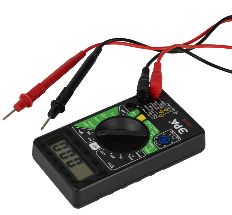 Цифровой Мультиметр предназначен для измерения постоянного и переменного напряжения, постоянного и переменного тока, сопротивления, проверки диодов (током 0,8 мА), биполярных транзисторов (измерение коэффициента усиления hFE), звуковой прозвонки. Метод измерений – АЦП двойного интегрирования с автоматической коррекцией нуля, автоматическим определением полярности и индикацией перегрузки. Полная защита от перегрузок. Предназначен для применения в полевых условиях, лабораториях, мастерских и домашнем хозяйстве. Миниатюрный, износостойкий, с 3 ½ – разрядным ЖК дисплеем.