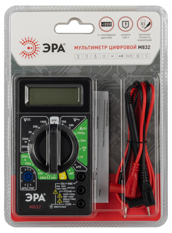 Мультиметр цифровой ЭРА модель M832 (кр. 1шт)