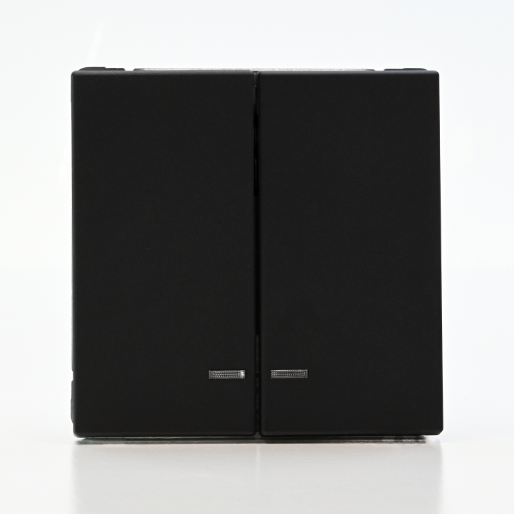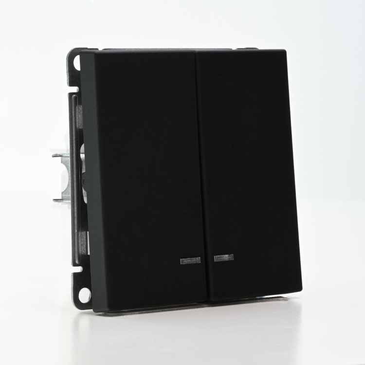 Механизм Systeme Electric серии ArtGallery в цвете карбон выключателя 2-клавишного c подсветкой подходит для сетей 250 В, на ток 10 А.