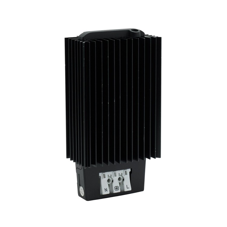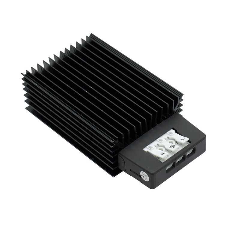 Обогреватель в черном алюминиевом корпусе мощностью 150 Вт предназначен для поддержания необходимой температуры внутри электротехнического шкафа. Работает от напряжения 48 В постоянного напряжения. Обогреватель изготовлен из высококачественных материалов, обеспечивающих надежную работу. Степень защиты – IP20. Благодаря компактным размерам 50x70x132 мм этот обогреватель легко устанавливается в ограниченном пространстве. Рабочий диапазон температур от –45 до +70 ˚C делает его подходящим для использования в суровых условиях эксплуатации. Обогреватель оснащен нагревательным элементом РТС-типа, что обеспечивает стабильную и долговечн ую работу.