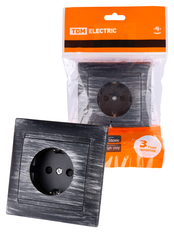 Розетка 2П+З 16А 250В с защ. шт. старинное серебро "Лама" TDM (кр.10шт)